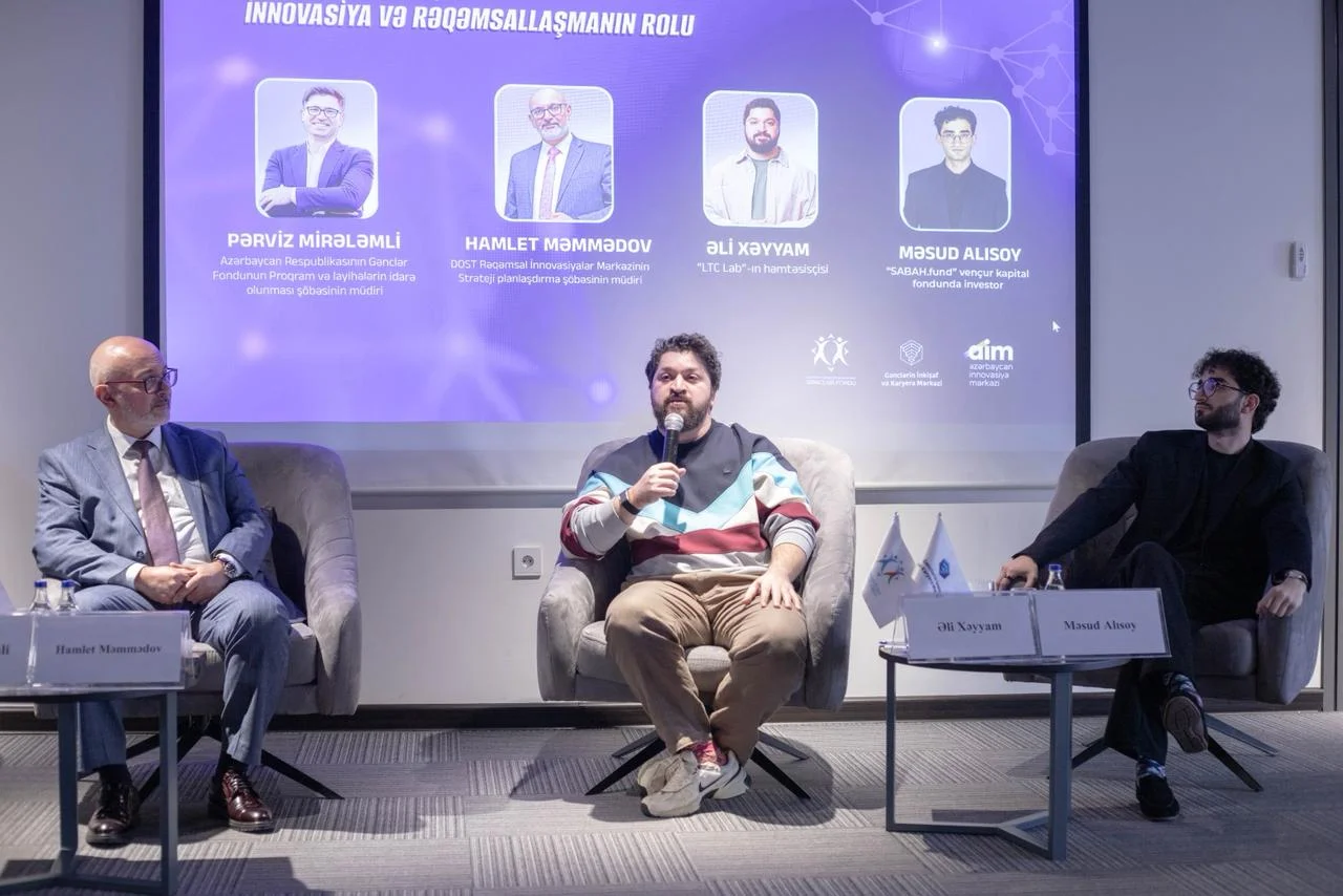 Forum çərçivəsində “Şəxsi İnkişafda İnnovasiya və Rəqəmsallaşmanın Rolu” mövzusunda panel müzakirəsi keçirilib. Paneldə Azərbaycan Respublikasının Gənclər Fondunun Proqram və layihələrin idarə olunması şöbəsinin müdiri Pərviz Mirələmli, DOST Rəqəmsal İnnovasiyalar Mərkəzinin Strateji planlaşdırma şöbəsinin müdiri Hamlet Məmmədov, LTC Labın həmtəsisçisi Əli Xəyyam və SABAH.fundun investoru Məsud Alısoy spiker qismində çıxış ediblər.