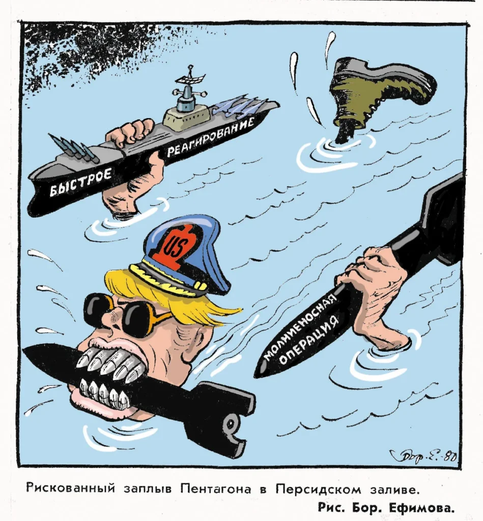 Sovet dövrünün məşhur karikatura ustası Boris Yefimovun yarım əsr əvvəl yaratdığı illüstrasiyalar bu gün Yaxın Şərqdə baş verən hadisələr fonunda yenidən diqqət mərkəzinə gəlib.
