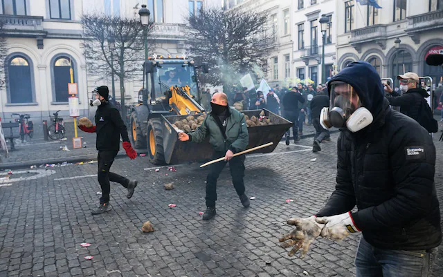 Belçikanın paytaxtı Brüsseldə yüzlərlə fermer "Mercosur" sərbəst ticarət sazişinə etiraz olaraq traktorlarla yollara çıxdı, polisə kartof və yumurtalar atdı. Polis bibər qazı və su şırnağı ilə cavab verdi.