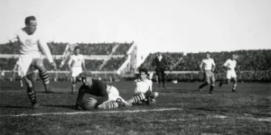 Dünya kubokunun ilk oyunu 13 iyul tarixində Montevideo şəhərində Estadio Pacitos Stadionunda keçirildi. Tribunalarda yer alan 4444 nəfər azarkeş çempionatın ilk matçı – Fransa-Meksika matçını izləmək üçün səbrsizlənirdi. Qarşılaşma qar yağmuru altında başladı. Matçın 20-ci dəqiqəsində Lüsian Loran dünya çempionatları tarixində ilk qolu vurdu. Bu, bir tarix olsa da, nə meydandakılar, nə də azarkeşlər bu tarixin fərqinə o qədər də varmadılar.