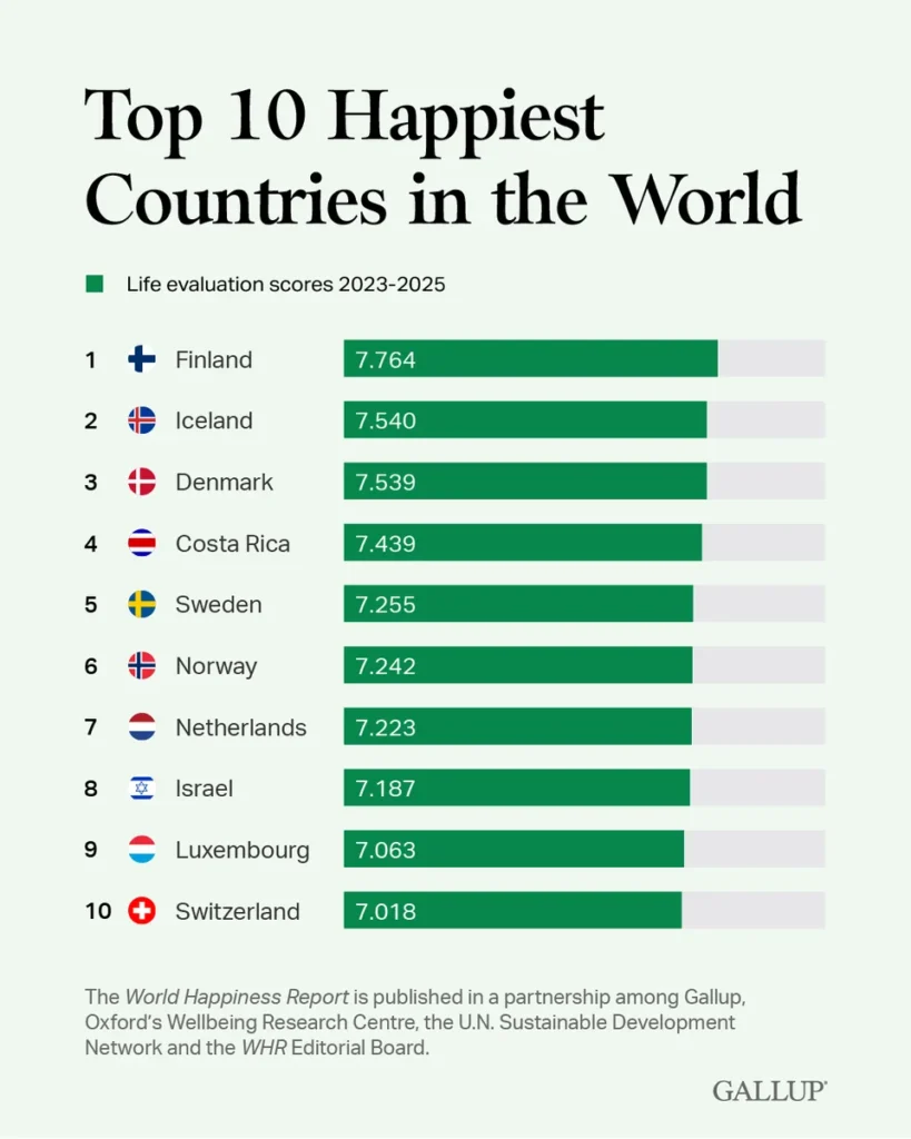 Dünyanın ən xoşbəxt ölkələrini müəyyən edən illik hesabat – “World Happiness Report” açıqlanıb. 2026-cı il siyahısında diqqət çəkən əsas yenilik Kosta Rikanın ilk dəfə ilk 5 ölkə sırasına daxil olması olub.