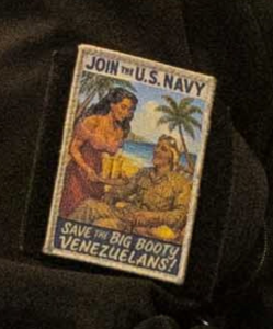 “New York Post” yazır ki, şəkildə bir dənizçinin üzərində “Hərbi Dəniz Qüvvələrinə qoşulun – iri ombalı venesuelalıları xilas edin!” (“Join the Navy, Save the Big Booty Venezuelans!”) ifadəsi olan qalmaqallı nişan görünürdü. DVIDS-in öz rəsmi izahına görə, bu platforma ABŞ Müdafiə Nazirliyinin hərbi foto, video və xəbər materiallarını yaydığı rəsmi media sistemidir.