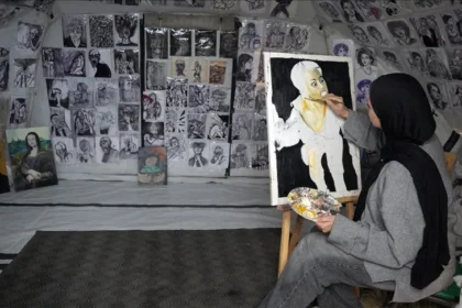 Qəzzalı gənc rəssam Zaanin dağıntı və itirilən arzuları rəsmlərində əks etdirir