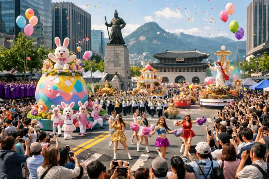 Seulda keçirilən 2026-cı il Pasxa Paradında İsanı canlandıran aktyorun kranla izdihamın üzərindən yüksəkliyə qaldırıldığı səhnə sosial şəbəkələrdə viral olub. Tədbirdə təxminən 8 min nəfər iştirak edib.