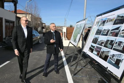 Prezident İlham Əliyev Xankəndinin Kərkicahan qəsəbəsində aparılan bərpa işləri ilə tanış olub