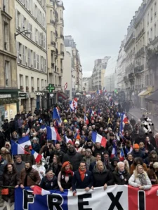 Filipponun sözlərinə görə, minlərlə insan küçələrə çıxaraq Fransa hakimiyyətinin daxili və xarici siyasətinə etiraz edib. Yürüş zamanı iştirakçılar Emmanuel Makron, Avropa Komissiyasının sədri Ursula von der Lyayen və Ukrayna Prezidenti Volodimir Zelenskinin adlarının çəkildiyi şüarlar səsləndiriblər. Etirazçılar “Makron, Ursula və Zelenski – pullarımızı geri qaytarın” çağırışı ilə çıxış ediblər.
