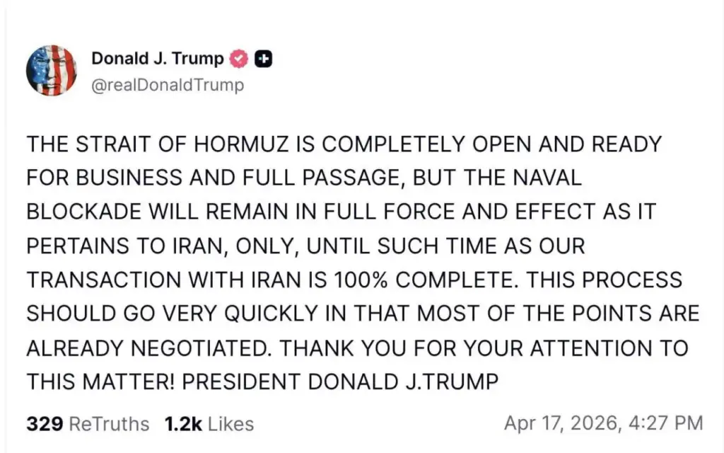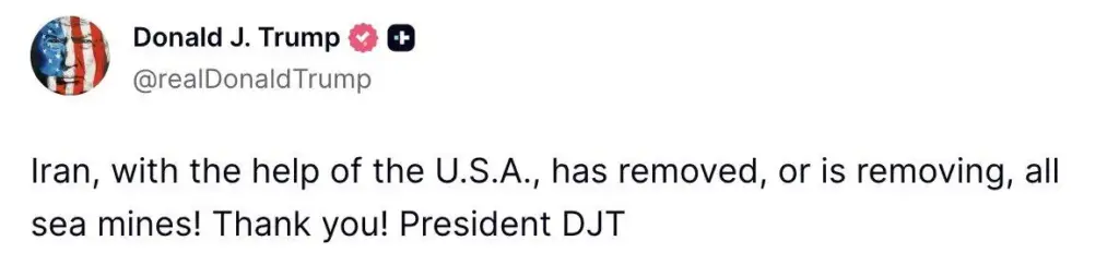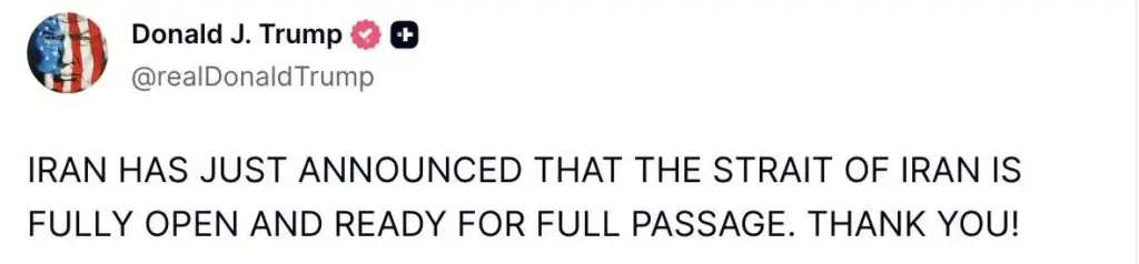 ABŞ prezidenti Donald Tramp da daha sonra bəyan edib ki, İran Hörmüz boğazının “tam açıq” olduğunu elan edib və keçid üçün hazır vəziyyətə gətirilib.