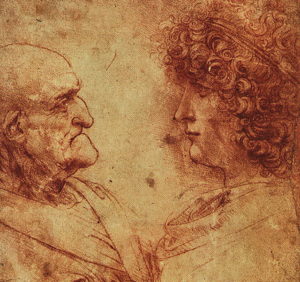 Məlum olur ki, Leonardo kasıb bir ailədən olan 10 yaşlı Giam Giakomo Kaprotti da Oreno adlı oğlan uşağını yanına şagird kimi götürür. Bu uşağın zaman keçdikcə yaramazlıqları və pis davranışları səbəbindən Leonardon tərəfindən “Salai”, yəni “kiçik şeytan” adlandırılması məlumdur. Bir çoxuna görə Salai, Da Vinçi üçün ilham qaynağı, kimilərə görə sadəcə şagirdi, kimilərə görə isə sevgilisi, bəlkə də elə hər üçü idi…Salaini bir neçə tabloda təsvir edən Leonardo ilə onun arasında hansısa münasibət ola bilərdimi? Misal üçün bu rəsmdəki kimi…Amma rəsmin nə üçün çəkildiyi bilinmir.