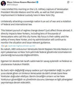 Nyu Yorkun yeni seçilmiş müsəlman meri Zohran Mamdani, Venesuela prezidenti Nikolas Maduronun tutulması və ABŞ‑ın Nyu‑York şəhərinə aparılması əməliyyatına sərt reaksiya verib. Mənbənin verdiyi məlumata görə, o, bu addımı “suveren dövlətə qarşı təktərəfli hücum” adlandıraraq, federal və beynəlxalq hüququn pozulması kimi qiymətləndirib.