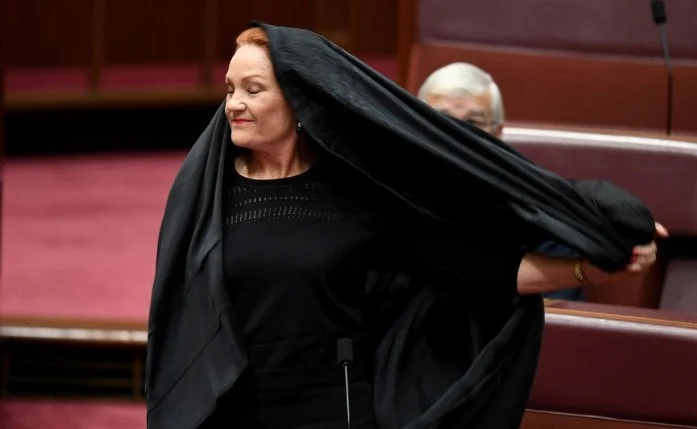 Avstraliyada “Tək Vətən” Partiyasından olan senator Paulina Hanson Senat iclasında qara çarşafla iştirak edərək yenidən gündəmə gəlib.