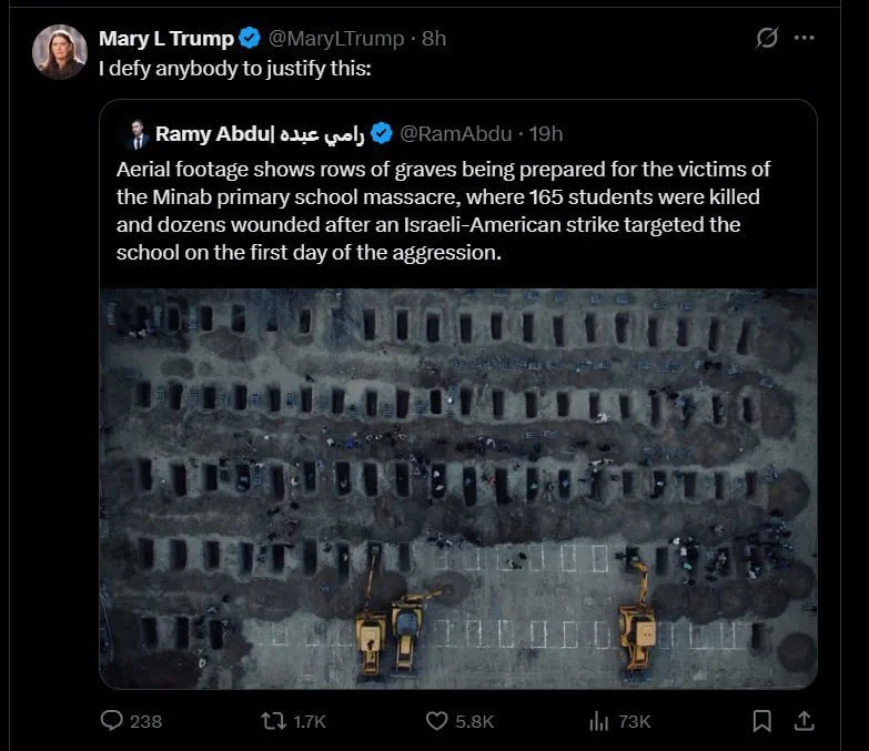 ABŞ Prezidenti Donald Trampın qardaşı qızı, psixoloq və yazıçı Meri L. Tramp sosial mediada paylaşdığı foto ilə yenidən diqqət mərkəzinə düşüb. O, paylaşımında əmisini kəskin tənqid edərək sərt ifadələr işlədib.