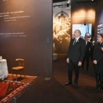 Dövlətimizin başçısı Memorialın önünə əklil qoyub. Prezidentin köməkçisi Anar Ələkbərov Memorialın ideyası, memarlıq konsepsiyası və ekspozisiya bölmələri barədə Prezidentə və birinci xanıma ətraflı məlumat verib.