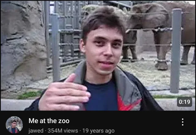 2005-ci il aprelin 23-də platformaya yüklənən “Me at the zoo” adlı video yalnız 19 saniyə davam edir və “YouTube”-un qurucu ortaqlarından biri olan Caved Karimin San-Dieqo zooparkında iki filin qarşısında danışdığı qısa kadrları əks etdirir. Bu klip internet tarixində istifadəçi tərəfindən yaradılan ilk video kimi tanınır və bu günə qədər yüz milyonlarla baxış toplayıb.